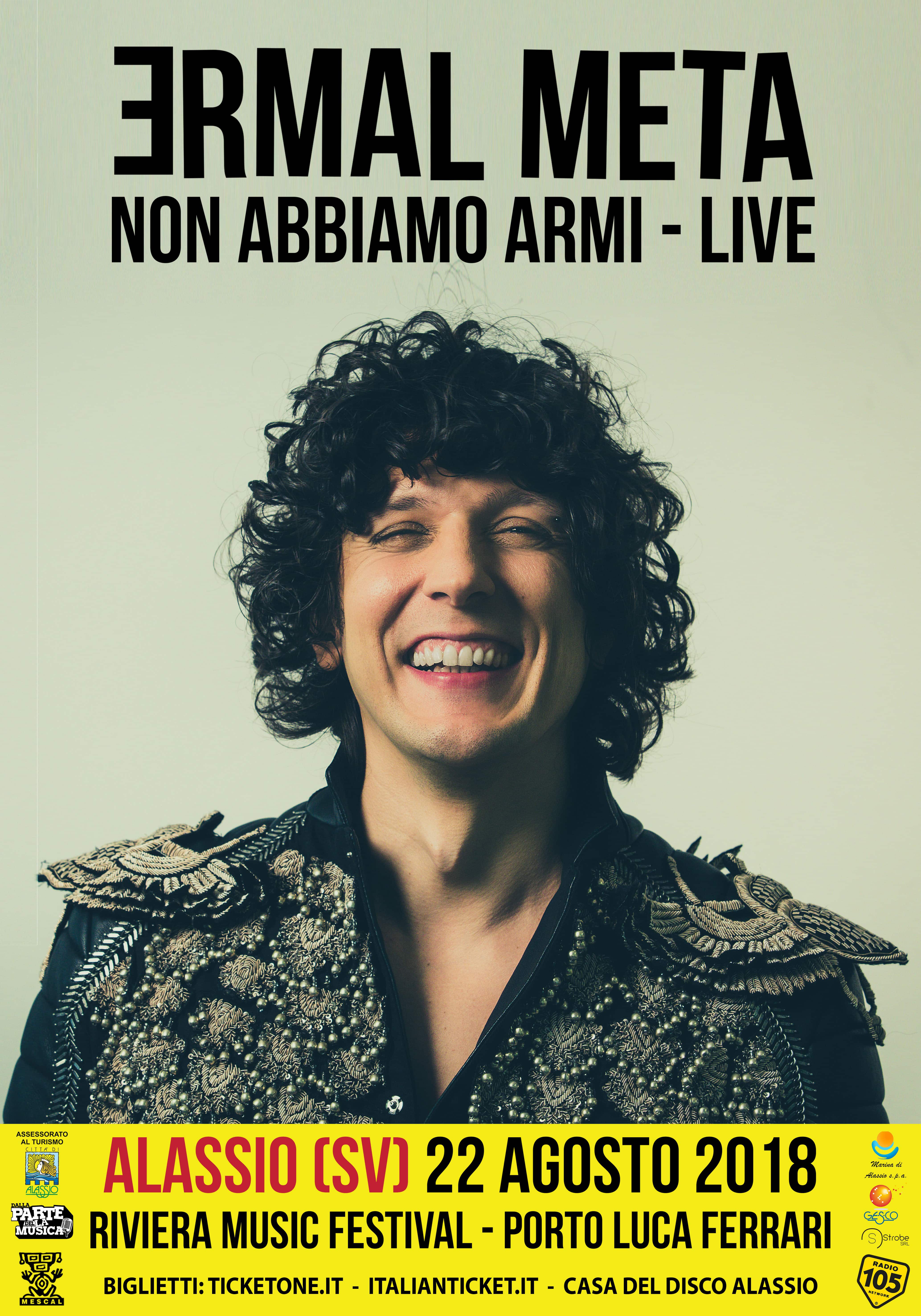 I biglietti per i concerti di Ermal Meta sono disponibili sul circuito Ticketone, per la data di Alassio saranno disponibili da lunedì 26 marzo 2018 anche presso la Casa del Disco di via Vittorio Veneto 70 Alassio e dal 4 aprile 2018 anche su Italianticket.
