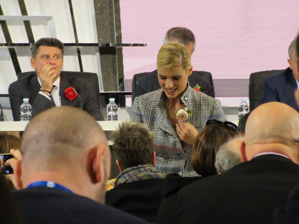 “Temo Sanremo, non sono così spavalda. Il palco dell’Ariston è magico e mi sento tanta responsabilità addosso – ha confessato la Hunziker –. Avevo presentato il Festival 11 anni fa insieme a Pippo Baudo, che mi aveva fatto da cuscino. Questa volta abbiamo provato parecchio, sono venute fuori tante gaffe mie e ci siamo divertiti un sacco. Da ciò sono scaturiti dei momenti simpatici, che porteremo in scena”. Il Sindaco ha lanciato l’iniziativa di un fiore, un ranuncolo, da appuntare sull’abito di Michelle contro la violenza sulle donne e subito la soubrette lo ha accettato e si è messa a distribuirlo in sala stampa. La Huziker, in aggiunta, intende puntare l’attenzione sul mondo femminile durante il Festival con la sua Fondazione Doppia Difesa.