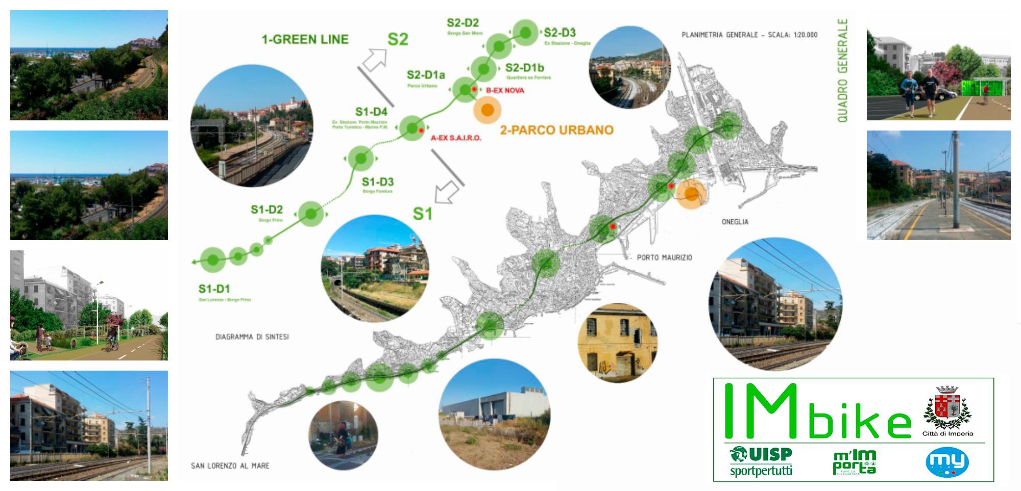 Il tracciato della ciclabile andrà a integrarsi a quello già esistente di Area 24 allungandolo da San Lorenzo fino alla stazione di Oneglia con collegamenti “verticali” per legare i quartieri cittadini, rivitalizzando in particolare Borgo San Moro, Ferriere e Fondura, il porto e il parco urbano.