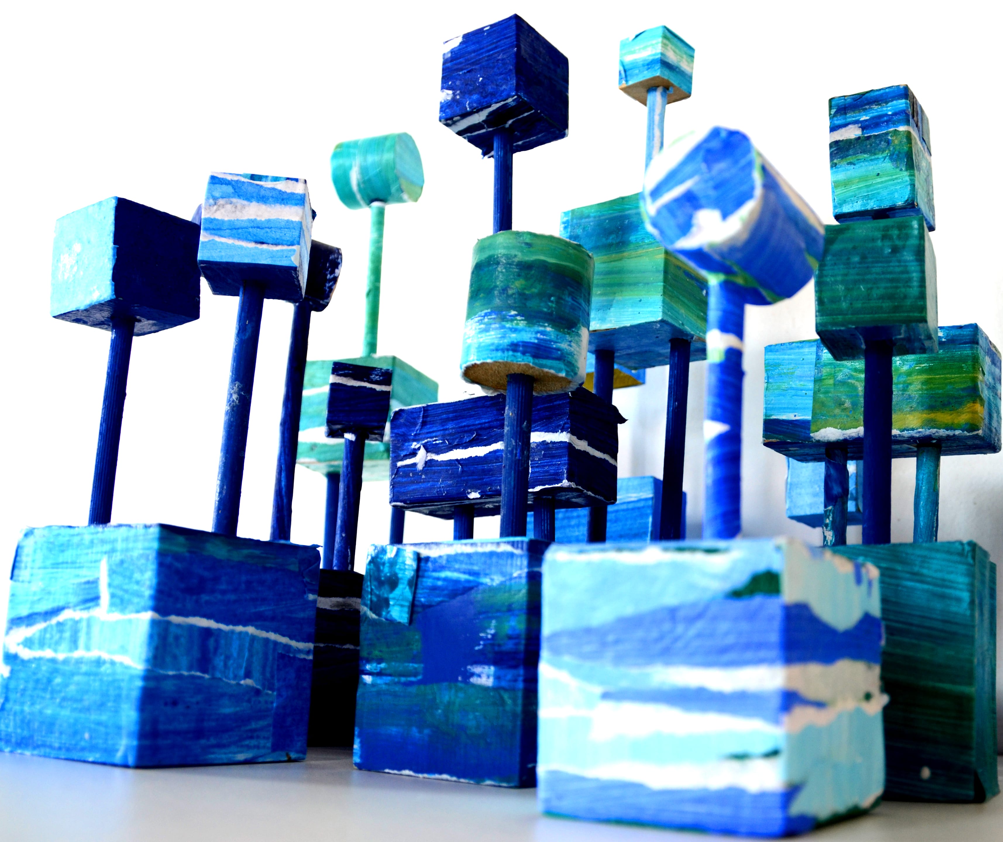 Un vasto work in progress collettivo itinerante che parte dal gioco, pensato per la piazza intesa come Agorà (luogo dell’incontro e del confronto), per rimettere in gioco i concetti d’identità e differenza, incontro con l’altro, l’estraneo, strano in quanto straniero, lo sconosciuto proveniente da un altro mondo. La moltitudine migrante degli "Abi-Tanti" è composta da oltre 7.000 esemplari, realizzati a partire da materiali eco-sostenibili, scarti industriali, quadrelle e cubotti di legno, dalle tante persone che adottano il progetto, inteso come work in progress, utile a configurare una moltitudine di esseri apparentati per famiglie contraddistinte dal differente aspetto esteriore.